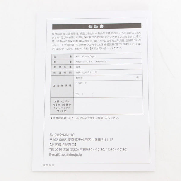 【新品】KINUJO Hair Dryer KH302 モカ ヘアドライヤー キヌージョ 絹女 本体