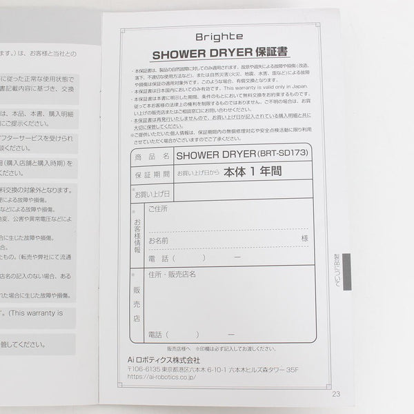 Brighte SHOWER DRYER BRT-SD173 ヘアドライヤー ブライト シャワードライヤー 本体