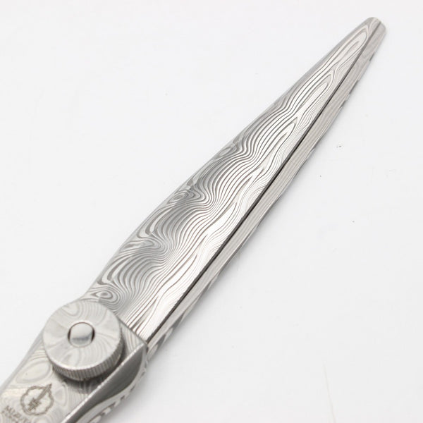 ダマスカス鋼の”強靭さ””美しさ”に、オーガニックハンドルで”使いやすさ”を備えたハマグリ刃のシザー。