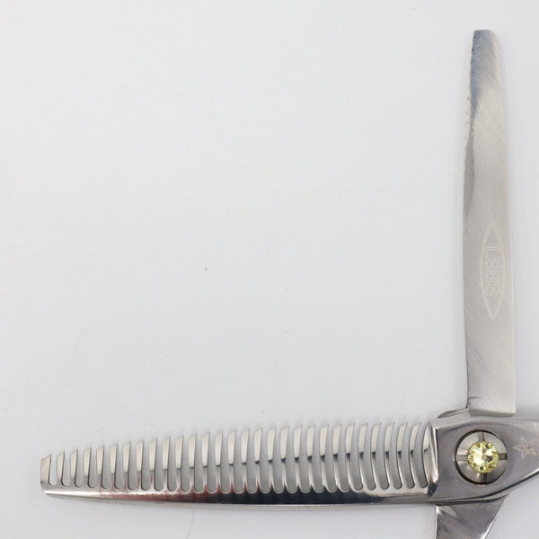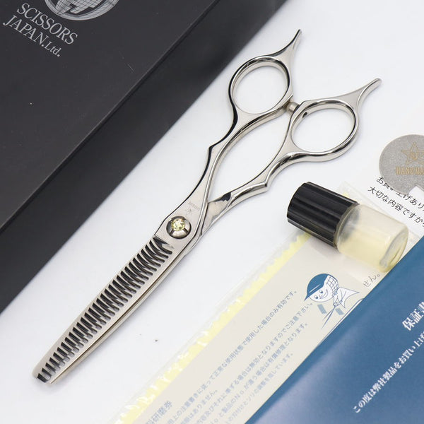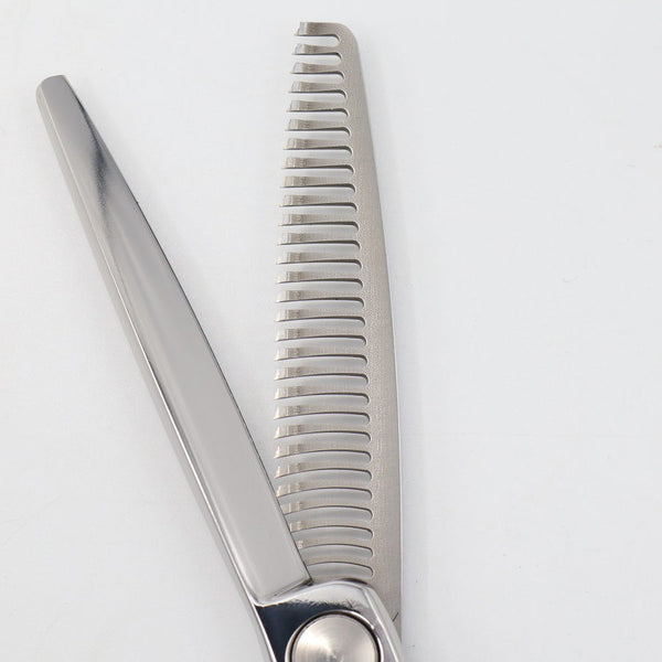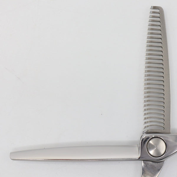 フロールヘッドで切れが柔らかく、セニング特有のザクザク音が抑えられた、お客様も気持ちいいセニングシザーです。